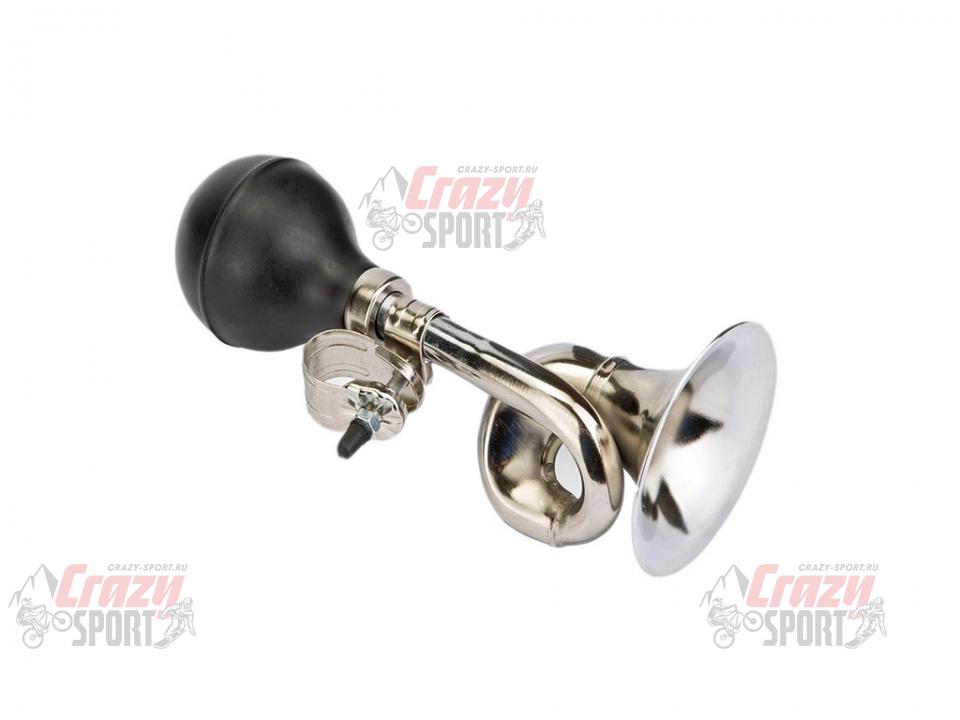 Клаксон STELS 86B-01 изогнутый сталь/резина чёрно-хромированный
